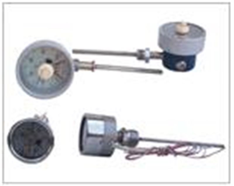 电接点双金属温度计是利用温度变化时带动触点变化,当其与上下限触点接触或断开的同时,使电路中的继电器动作,从而自动控制和报警。