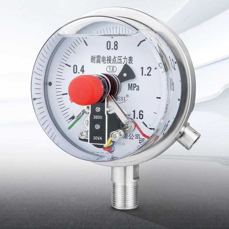 不锈钢电接点压力表是一种用于测量液体或气体压力的设备,具有不锈钢材质的接点,通常用于工业领域的压力监测和控制。这种压力表具有以下特点: